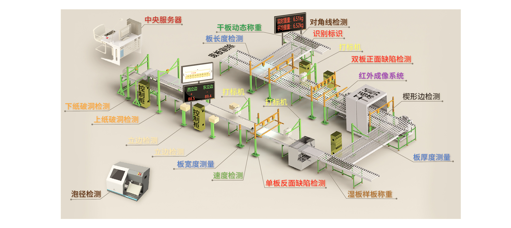 石膏板质量在线检测系统成套智能装备,融合人工智能、机器视觉、3D结构光技术、嵌入式控制技术、激光技术、网络技术、自动化控制等高新技术,实现石膏板在生产过程中的实时在线质量检测与控制。